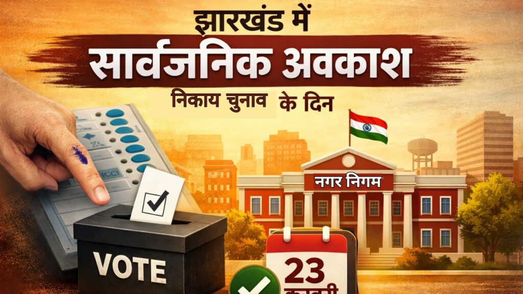 झारखंड सरकार ने 23 फरवरी को होने वाले नगर निकाय चुनाव के दिन सार्वजनिक अवकाश घोषित कर दिया है। सरकार का उद्देश्य है कि अधिक से अधिक मतदाता बिना किसी बाधा के अपने मताधिकार का प्रयोग कर सकें।