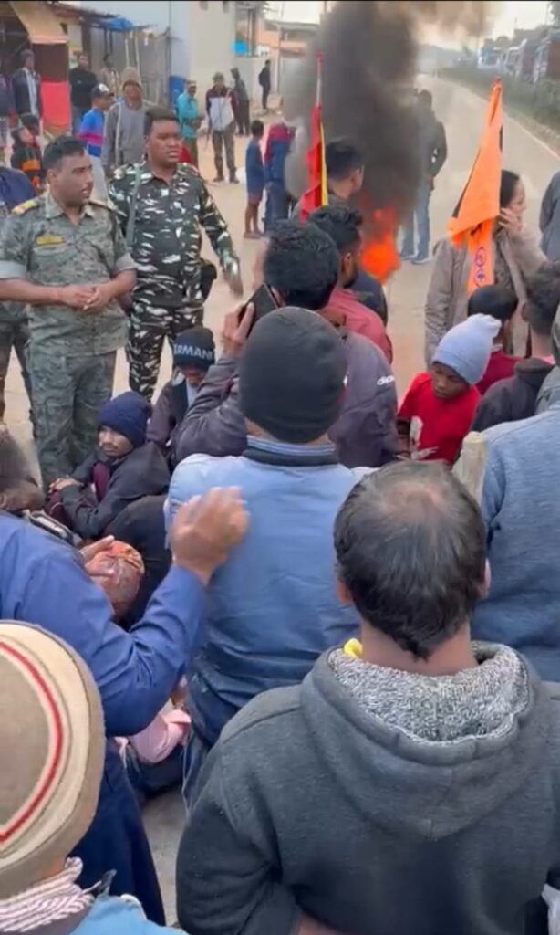 रांची। रांची जिले के मांडर के मुड़मा में मंदिर की मूर्ति को असामाजिक तत्वों ने खंडित कर दिया। जिसके विरोध में आक्रोशित ग्रामीणों ने सुबह से ही सड़क पर उतर आए हैं और एनएच-75 को जाम कर दिया है। रांची मांडर के मुड़मा चौक पर आक्रोशित लोगों को प्रशासन द्वारा समझाने की कोशिश हो रही है। सड़क पर आगजनी की गई है आवागमन पूरी तरह से बाधित है। मिली जानकारी के अनुसार मांडर के मुड़मा में चार मंदिरों की प्रतिमा को खंडित किया गया है। महाबीर मंदिर, छोटा बजरंग बली मंदिर, बुढ़ा महादेव, मड़ई देवी मंडप में अज्ञात असामाजिक तत्वों केद्वारा घटना को अंजाम दिया गया है। पुलिस आक्रोशित ग्रामीणों को समझाने की कोशिश कर रहे हैं, लेकिन ग्रामीण उग्र है। घटना को अंजाम देने वालों की गिरफ्तारी की मांग कर रहे हैं। वहीं, समाज के प्रबुद्धजन ग्रामीणों को समझाने की कोशिश कर रहे हैं, लेकिन ग्रामीण मानने को तैयार नहीं है। भारी संख्या में पुलिस बल को तैनात कर दिया है।