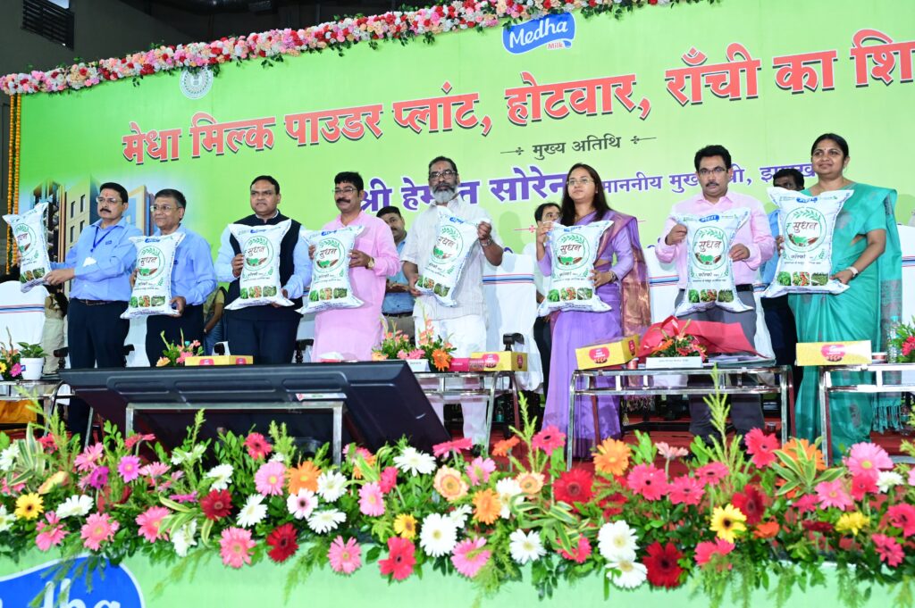 Milk Powder Plant : किसानों का कल्याण हमारी सर्वोच्च प्राथमिकताओं में शामिल है। किसान भाइयों की आय कैसे बढ़े, वे कैसे समृद्ध, सशक्त और स्वावलंबी हों,इस सोच के साथ हमारी सरकार उनके साथ हर मोर्चे पर खड़ी है। मुख्यमंत्री हेमंत सोरेन ने आज मेधा डेयरी प्लांट, होटवार, रांची में राज्य के पहले मिल्क पाउडर प्लांट की आधारशिला रखने के उपरांत हरिवंश टाना भगत स्टेडियम, होटवार में आयोजित कार्यक्रम को संबोधित कर रहे थे। मुख्यमंत्री ने कहा कि किसानों के जीवन में सकारात्मक बदलाव लाने का प्रयास निरंतर जारी है। इस सिलसिले में कई योजनाएं चल रही है और आने वाले दिनों में कई और योजनाएं धरातल पर उतारी जाएगी। आप इन योजनाओं से जुड़ें और अपने साथ राज्य को मजबूत बनाने में सहयोग दें। मुख्यमंत्री ने इस अवसर पर मेधा रागी लड्डू, मेधा सूधन खाद और जानवरों का चारा बनाने वाली मशीन- साइलेज को लांच किया।