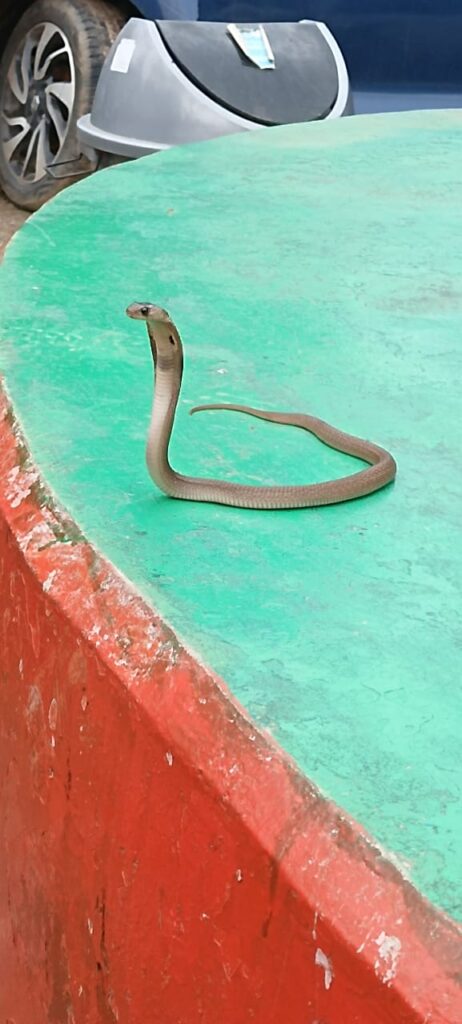 रांची। पुंदाग ओपी में अचानक सांप-सांप की आवाज सुन कर वहां मौजूद पुलिसकर्मी चौंक गए, पुंदाग थाना प्रभारी विवेक मौके पर पहुंचे तो उन्होंने देखा कि थाने के अंदर फन फैलाए एक कोबरा सांप बैठा हुआ है। भीड़ देखकर नाग साँप फुफकारने लगा। इसके बाद थाना प्रभारी और अन्य पुलिसकर्मियों ने मिलकर कोबरा सांप को पकड़कर एक बोतल में बंद कर दिया। पुंदाग थाना प्रभारी विवेक कुमार ने ही कोबरा को बेहद कुशलता के साथ सावधानी पूर्वक पकड़ा और एक बोतल में बंद कर दिया। थाने में कोबरा सांप काफी देर तक अपने फन को फैलाए हुए पुलिसकर्मियों को देखता रहा। कमरे से बाहर निकालने के बाद भी कोबरा ने भागने की कोशिश नहीं की, यहां तक कि वह पुलिसकर्मियों को देखकर भी चुपचाप दीवार से सट कर बैठा रहा। मौजूद पुलिसकर्मियों ने एक स्वर में कहा कि सांप को पकड़कर वन विभाग के हवाले कर देना चाहिए। सावन के महीने में सांप की पूजा की जाती है, क्योंकि यह भगवान शिव के गले में लिपटा रहता है। वन विभाग को मामले की जानकारी दे दी गई है ,ताकि सांप को जंगल में छोड़ा जा सके।