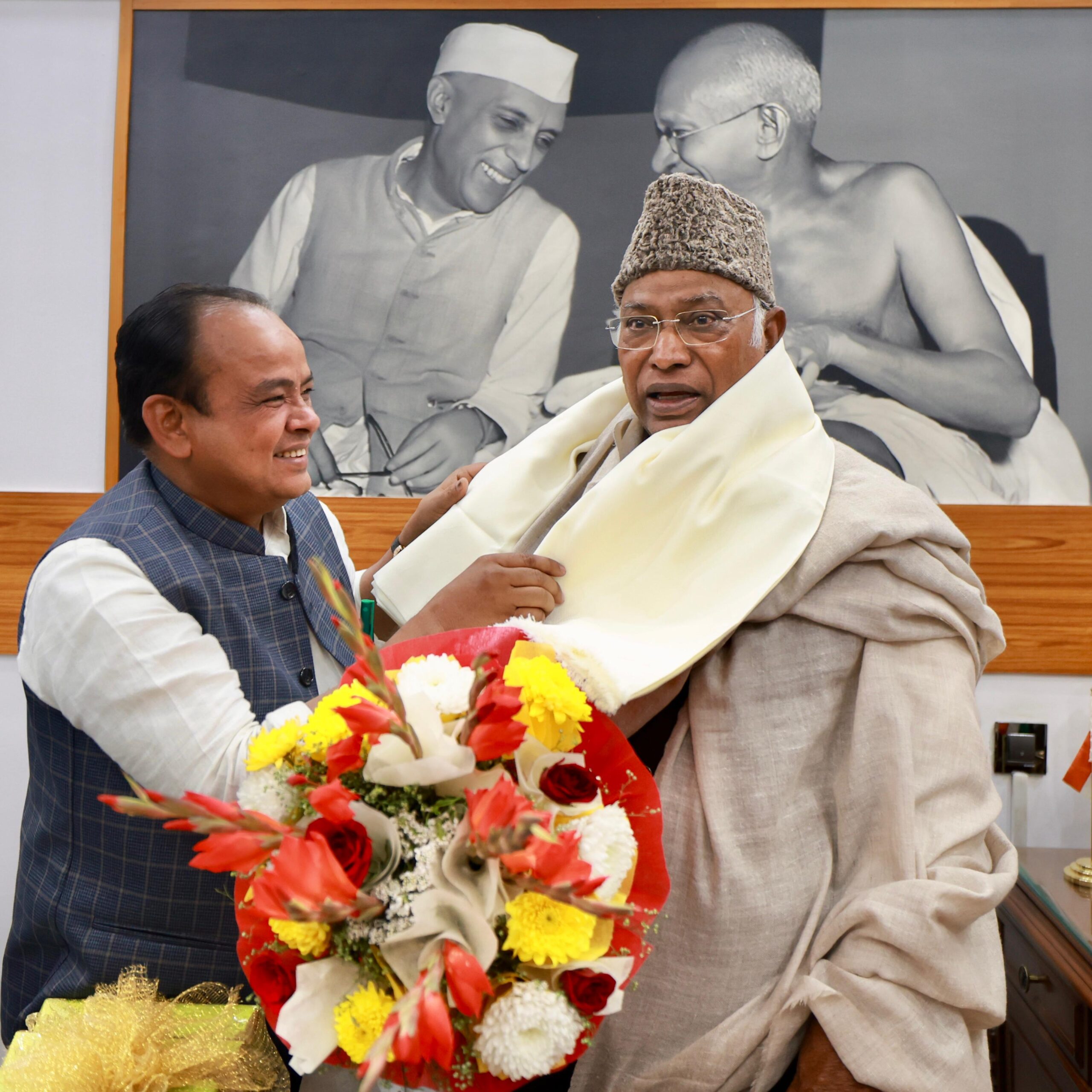 रांची। दिल्ली में स्वास्थ एवं खाद्य आपूर्ति मंत्री झारखंड सरकार डॉ इरफान अंसारी ने कांग्रेस पार्टी के राष्ट्रीय अध्यक्ष मल्लिकार्जुन खड़गे से मुलाकात की। दोनों के बीच यह मुलाकात लगभग आधे घंटे तक चली, जिसमें झारखंड में कांग्रेस पार्टी के संगठन सशक्तिकरण एवं संबंधित मंत्रालय की योजनाओं से झारखंड की जनता को अधिक से अधिक लाभ पहुंचाने के विषय में चर्चा हुई।खड़गे ने इरफान अंसारी की हौसलाफजाई करते हुए कहा कि वो जामताड़ा से लगातार तीसरी बार विधायक ब हैं, क्योंकि उन्होंने कांग्रेस पार्टी की विचारधारा जनसेवा को आत्मसात कर सदैव जनता की सेवा की है। साथ ही कांग्रेस पार्टी के संगठन को भी मजबूत करने का काम किया है। इरफ़ान अंसारी ने सिर्फ जामताड़ा ही नहीं, बल्कि आम जनता की भलाई के लिए पूरे झारखंड में कार्य किया है। अब वो बतौर मंत्री पहले दिन से ही राज्य की जनता के हित के लिए पूरी मेहनत और ईमानदारी से कार्य कर रहें हैं। जिससे मुझे काफी प्रसन्नता हुई है। पार्टी को ऐसे ही मजबूत और प्रतिज्ञाबद्ध कार्यकर्ता की जरूरत है। वहीं, डॉ इरफान अंसारी ने कहा कि पार्टी राष्ट्रीय अध्यक्ष के प्रोत्साहन और आशीर्वाद से मैं अभिभूत हूं। पार्टी ने मुझपर जो विश्वास दिखाया है उसे मैं पूरी निष्ठा और ईमानदारी से निभाऊंगा। इस अवसर पर राष्ट्रीय कांग्रेस के महासचिव सैयद नासिर हुसैन, आईसीसी के सचिव प्रणव झा, अल्पसंख्यक मोर्चा के अध्यक्ष इमरान प्रतापगढ़ी, कांग्रेस पार्टी के सीनियर नेता पूर्व सांसद मोहम्मद अजहरूद्दीन, झारखंड के अल्पसंख्यक प्रकोष्ठ के अध्यक्ष मंजूर अंसारी सहित अन्य नेता मौजूद थे।