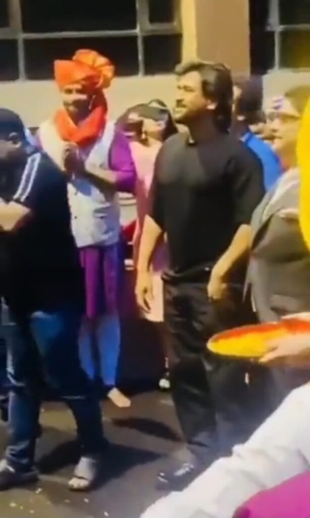 रांची। पूरे देश में बीते मंगलवार को धूमधाम से गणेश चतुर्थी का उत्सव मनाया गया। खासतौर से मुंबई में। बॉलीवुड सिलेब्स ने भी अपने-अपने घरों में बप्पा का स्वागत किया। वहीं, सोशल मीडिया X पर टीम इंडिया के पूर्व कप्तान महेंद्र सिंह धाैनी का एक वीडियो वायरल हुआ है। इस वीडियो में धौनी गणेश चतुर्थी के दिन भगवान का दर्शन कर रहे। धौनी ने फूलों से गणेश भगवान पर फूल बरसाए। इस दौरान उनके आसपास काफी संख्या में लोग भी मौजूद थे। यह वीडियो तेजी से सोशल मीडिया में वायरल हो गया। धौनी के साथ उनके बचपन के मित्र सिमांत लोहानी भी शामिल हैं। बता दें कि देश के बड़े बिजनेसमैन मुकेश अंबानी के घर भी गजानन पधारे। एंटीलिया में भव्य सेलिब्रेशन हुआ, जिसमें शाहरुख खान, सलमान खान, रणवीर सिंह, दीपिका पादुकोण, जॉन अब्राहम, शाहिद कपूर, अनिल कपूर सहित तमाम जानी-मानी हस्तियां पहुंचीं। अब सोशल मीडिया पर सेलिब्रेशन का इनसाइड वीडियो वायरल हो रहा है। जहां शाहरुख-सलमान भगवान गणेश के सामने झुककर आशीर्वाद लेते दिखे तो दीपिका को अबराम संग खेलते हुए देखा गया। वहीं, सलमान खान की बहन के घर महाराष्ट्र के सीएम व सलमान खान पहुंचकर गणेश चतुर्थी के उत्सव में शामिल हुए।