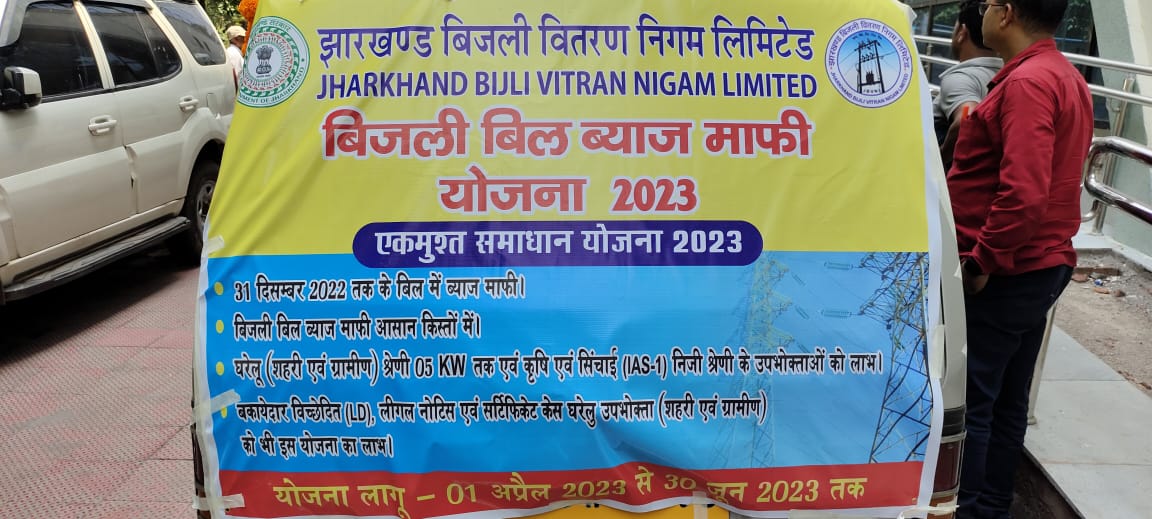 रांची। झारखंड बिजली वितरण निगम लिमिटेड के बिजली बिल ब्याज माफी योजना 2023 अंतर्गत ओटीएस (वन टाइम सेटलमेंट) रथ को समाहरणालय ब्लॉक ए परिसर से रवाना किया गया। उपायुक्त रांची राहुल कुमार सिन्हा, जीएम जेबीवीएनएल पीके श्रीवास्तव व एसई डीके सिंह ने संयुक्त रुप से हरी झंडी दिखाकर ओटीएस रथ को रवाना किया। इस दौरान कार्यपालक अभियंता हिंमाशु शेखर एवं अन्य संबंधित पदाधिकारी/कर्मी उपस्थित थे। उपायुक्त राहुल कुमार सिन्हा ने बताया कि ओटीएस रथ के माध्यम से जिला के शहरी एवं ग्रामीण क्षेत्रों में योजना प्रचार-प्रसार किया जाएगा। उन्होंने बताया कि बिजली बिल ब्याज माफी योजना अंतर्गत 31 दिसंबर 2022 तक के बिल में ब्याज माफी का लाभ मिलेगा। बिजली बिल ब्याज माफी आसान किश्तों में होगी। घरेलु (शहरी एवं ग्रामीण) श्रेणी में 5 किलोवाट तक तथा कृषि एवं सिंचाई (आईएएस-1) निजी क्षेत्र के उपभोक्ताओं को इसका लाभ मिल सकेगा। साथ ही बकायेदार विच्छेदित, लीगल नोटिस एवं सर्टिफिकेट केस घरेलु उपभोक्ता (शहरी एवं ग्रामीण) को भी इस योजना का लाभ मिल सकेगा।