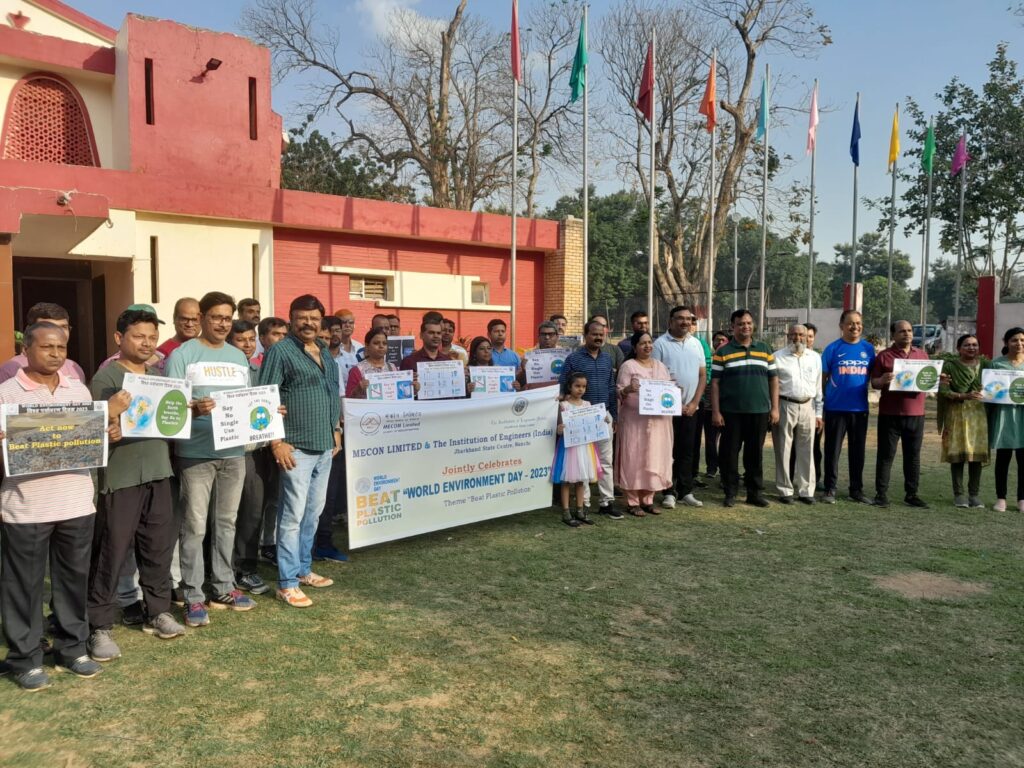 रांची। विश्व पर्यावरण दिवस 2023 आयोजन के अवसर पर मेकॉन लिमिटेड एवं इंस्टीट्यूशन ऑफ इंजीनियर्स (इंडिया), झारखंड राज्य केंद्र, रांची की ओर से पर्यावरण की रक्षा तथा उसके संरक्षण के महत्व के बारे में जागरूकता फैलाने के लिए विभिन्न गतिविधियों और प्रतियोगिताओं का आयोजन किया। इस अवसर पर श्यामली कॉलोनी में प्रभात फेरी का आयोजन किया गया। इसमें मेकॉन के कर्मचारियों और इंस्टीट्यूशन ऑफ इंजीनियर्स (आई), झारखंड राज्य केंद्र, रांची के सदस्यों ने भाग लिया। हाथों में बैनर प्रदर्शित कर लोगों को पेड़ों और पर्यावरण को बचाने के लिए प्रोत्साहित किया। फैंसी ड्रेस प्रतियोगिता का आयोजन कम्युनिटी हॉल, श्यामली कॉलोनी में चौथी कक्षा तक के बच्चों के लिए फैंसी ड्रेस प्रतियोगिता का भी आयोजन किया गया। फैंसी ड्रेस प्रतियोगिता में रंग-बिरंगे परिधानों में सजे-धजे लगभग 80 बच्चों ने भाग लिया और ‘बीट द प्लास्टिक पॉल्यूशन’ एवं ‘पर्यावरण बचाओ’ के संदेश का प्रचार-प्रसार किया।