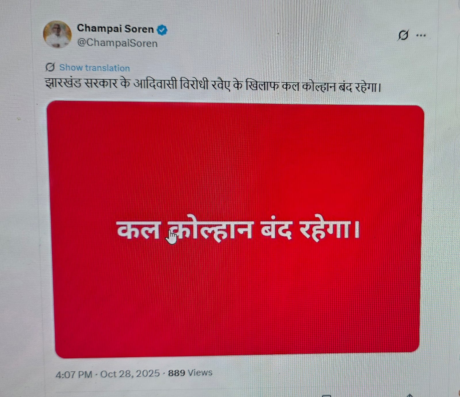 पूर्व सीएम चंपई सोरेन का आह्वान: 29 को कोल्हान बंद रहेगा