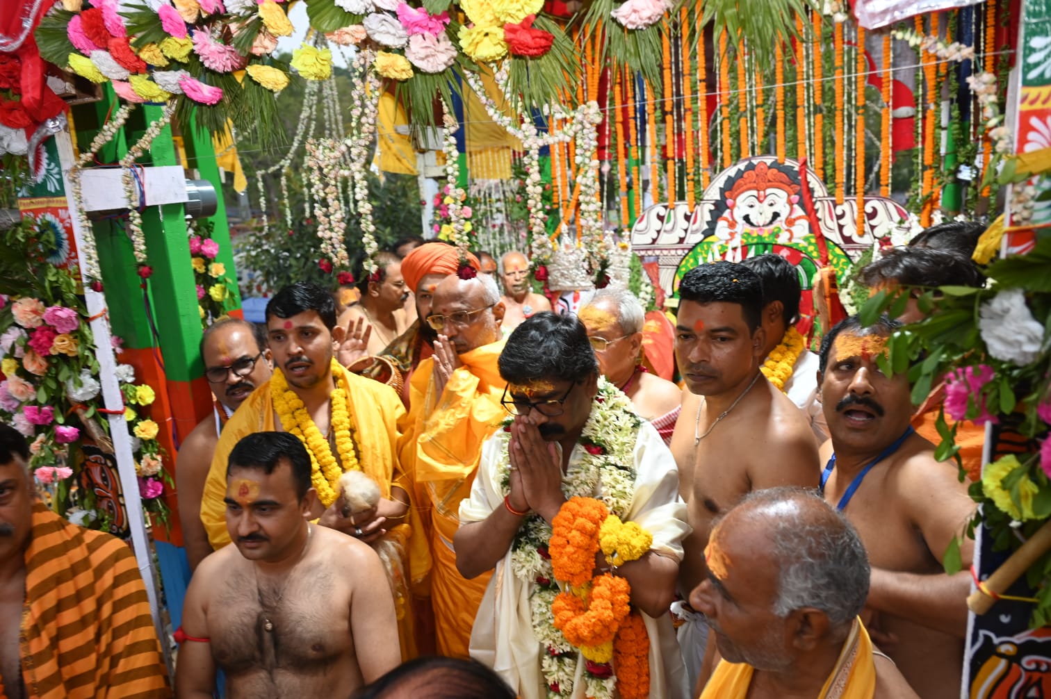 रांची। राज्यपाल सीपी राधाकृष्णन व मुख्यमंत्री हेमंत सोरेन मंगलवार को धुर्वा स्थित ऐतिहासिक जगन्नाथपुर मंदिर रथयात्रा महोत्सव में सम्मिलित हुए। इस अवसर पर राज्यपाल व माननीय मुख्यमंत्री ने भगवान जगन्नाथ, बहन सुभद्रा एवं भाई बलभद्र की विधिवत पूजा-अर्चना कर झारखंड वासियों की सुख, समृद्धि, शांति, खुशहाली तथा प्रगति की प्रार्थना की। मौके पर मुख्यमंत्री हेमन्त सोरेन ने राज्य वासियों को भक्ति एवं समर्पण का पर्व रथयात्रा की बधाई एवं शुभकामनाएं दीं। इस अवसर पर सांसद संजय सेठ, विधायक नवीन जयसवाल सहित अन्य गणमान्य लोग बड़ी संख्या में उपस्थित थे।
