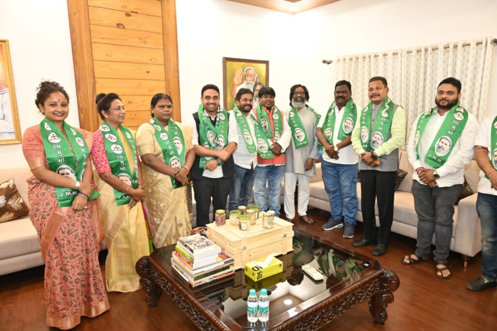 रांची। झारखंड में होने वाले विधानसभा चुनाव से पहले भाजपा के कई दिग्गज नेताओं ने झारखंड मुक्ति मोर्चा का दामन थाम लिया। यानी कहा जा सकता है की जेएमएम अब आैर भी मजबूत हो गया। पार्टी के के निति-सिद्धांत, केंद्रीय अध्यक्ष शिबू सोरेन के मार्गदर्शन व कार्यकारी अध्यक्ष हेमंत सोरेन के नेतृत्व पर आस्था व्यक्त करते हुए भाजपा की पूर्व मंत्री लुईस मरांडी, पूर्व विधायक घाटशिला लक्ष्मण टुडू, पूर्व विधायक बहरागोड़ा कुणाल षाड़ंगी, सरायकेला विधानसभा क्षेत्र से भाजपा के पूर्व प्रत्याशी गणेश महली, पूर्वी सिंहभूम के भाजपा जिलाध्यक्ष बारी मुर्मू, भाजपा नेता बास्को बेसरा पार्टी में शामिल हुए।| इस अवसर पर पार्टी के केंद्रीय कार्यकारी अध्यक्ष हेमंत सोरेन ने सभी को पार्टी का अंगवस्त्र पहना कर पार्टी में शामिल किया। इस मौके पर बहरागोड़ा विधायक समीर मोहंती व केंद्रीय महासचिव विनोद पांडेय उपस्थित थे।