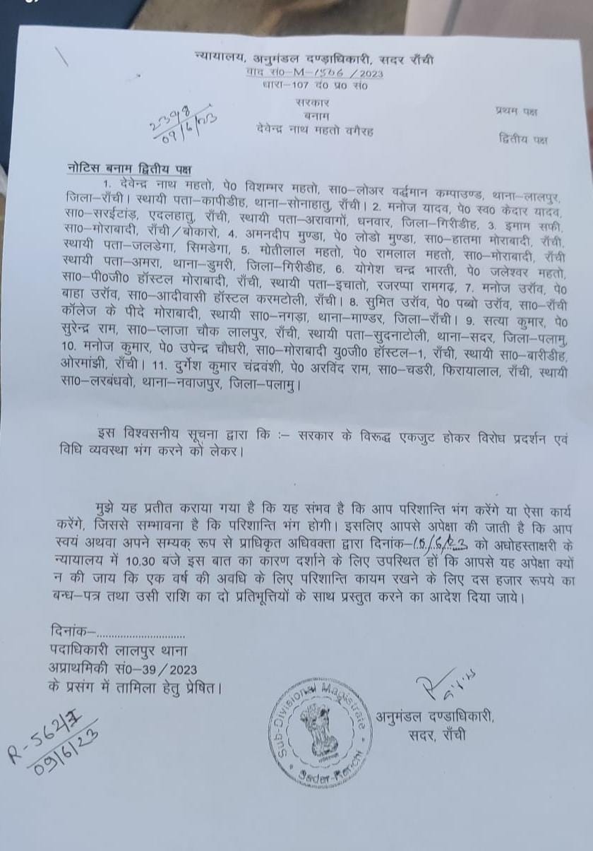 रांची। 60-40 नियोजन नीति के खिलाफ 10-11 जून को संपूर्ण झारखंड बंद किया गया। आवश्यक व मेडिकल सेवाओं को बंद से मुक्त रखा गया है। बंदी से पहले नौ जून को पूरे झारखंड में प्रखंड व जिला मुख्यालय के चौक-चौराहाें से मशाल जुलूस निकाला गया। रांची में भी शाम में जयपाल सिंह मुंडा स्टेडियम से अलबर्ट एक्का चौक तक मशाल जुलूस निकाला गया। इस बीच 11 बंद समर्थकों को सदर रांची अनुमंडल दंडाधिकारी ने नोटिस जारी किया है। सभी को 10 जून को स्वयं या अधिवक्ता के माध्यम से पक्ष रखने का निर्देश दिया गया है। जारी नोटिस में सरकार के विरुद्ध एकजुट होकर विरोध प्रदर्शन एवं विधि व्यवस्था भंग करने का हवाला दिया गया है। यह बंद झारखंड स्टेट स्टूडेंट्स यूनियन की अगुवाई में बुलाया गया है। बंद को राज्य के विभिन्न आदिवासी-मूलवासी संगठनों का समर्थन प्राप्त है। उन्होंने राज्य के सभी बस एसोसिएशन, ट्रक एसोसिएशन, दुकानदार संघ, बाजार समिति से भी स्वेच्छा से बंद कर आंदोलन को सफल बनाने में सहयोग करने की अपील की है। झारखंड बंद का अभियान छात्रों ने सोशल मीडिया के माध्यम से चलाया। इस नियोजन नीति का कई छात्र संगठन भी विरोध कर रहे हैं। रांची में बंद को लेकर प्रशासन भी पूरी तरह से तैयार है। बंद के दौरान किसी तरह की कोई दुर्घटना न हो इसको लेकर प्रशासन तैयार है। अगर बंद समर्थक किसी तरह का जोर जबरदस्ती शहर में करते हैं तो इनके खिलाफ प्रशासन सख्त कार्रवाई करेगी। किसी को भी विधि व्यवस्था भंग करने नहीं दिया जाएगा।