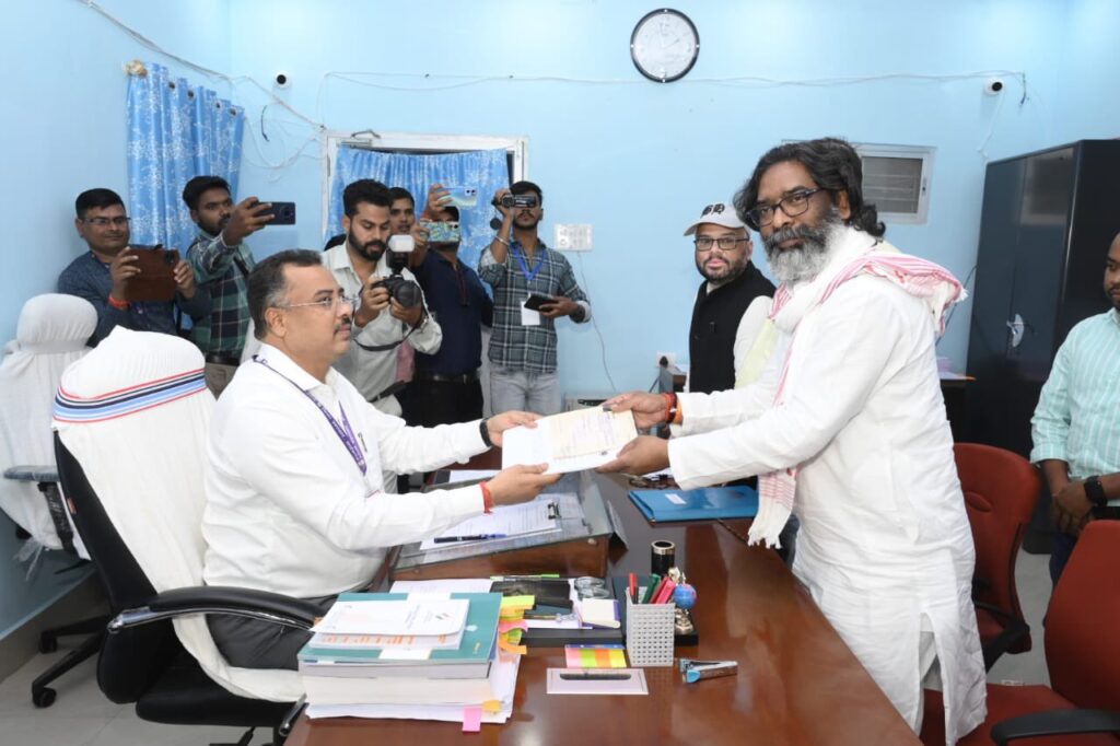 रांची। झारखंड में 13 व 20 नवंबर को होेने वाले विधानसभा चुनाव को लेकर गुरुवार यानी 24 अक्टूबर को इंडिया व एनडीए गठबंधन के कई दिग्गजों ने शक्ति प्रदर्शन कर नामांकन दाखिल कर दिया। सीएम हेमंत सोरेन ने बरहेट विधानसभा से अपना नामांकन दाखिल किया। करीब एक घंटे तक मुख्यमंत्री निर्वाचित पदाधिकारी सह अपर समाहर्ता गौतम कुमार भगत के साथ बैठे रहे। सीएम ने दो सेट में नामांकन दाखिल किया। नामांकन दाखिल करने के बाद मुख्यमंत्री ने समाहरणालय भवन के मुख्य द्वार पर मीडिया से कहा कि वे बरहेट विधानसभा से प्रत्याशी के तौर पर नामांकन दाखिल करने आए हैं। नामांकन के दौरान की कागजी प्रक्रिया पूरी कर ली है.