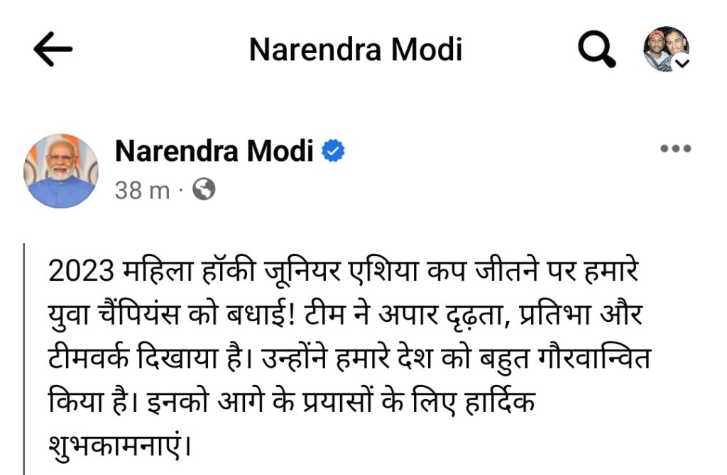 इतिहास रचने वाली भारत की महिला जूनियर हॉकी टीम को नरेंद्र मोदी और हेमंत सोरेन ने बधाई दिए