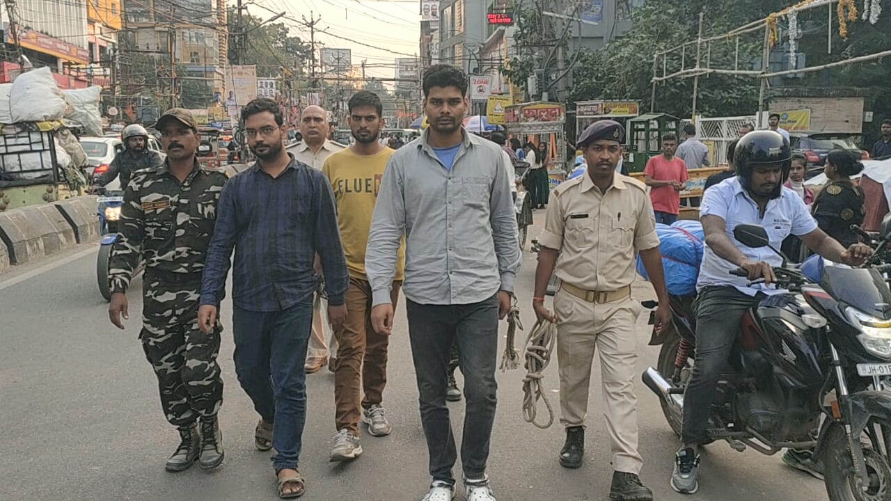 रांची। रांची पुलिस ने बुधवार को 3 अपराधियों को हथकड़ी पहना कर शहर घुमाया। ताकि अपराधियों को ये पता चल सके की कानून क्या है। पंडरा ओपी की पुलिस ने 3 अपराधियों का गिरफ्तार करने के बाद सड़क पर परेड कराया । पुलिस इन अपराधियों को रांची के कोतवाली थाना परिसर से कोर्ट तक पैदल ले गई। गिरफ्तार तीनों अपराधी का नाम बिट्टू पांडे ,अतुल चंद्र उर्फ मास्टर और विवेक कुमार है।पुलिस ने इस तरह से अपराधियों को परेड करा कर अपराधियों को साफ संदेश दिया है कि उनकी गुंडागर्दी अब नहीं चलेगी। पंडरा ओपी क्षेत्र के एलएन मिश्रा कॉलोनी के पास बीते 28 सितंबर को वर्चस्व और दहशत फैलाने के उद्देश्य से मनीष कुमार को गोली मारी गई थी। कोतवाली डीएसपी प्रकाश सोय के नेतृत्व में पुलिस की टीम ने कार्रवाई करते हुए इस घटना के मुख्य आरोपियों को जेल भेज दिया। गिरफ्तार अपराधियों के पास से पुलिस ने एक देसी पिस्टल, एक देसी कट्टा, सात जिंदा गोली और मोबाइल फोन बरामद किया।