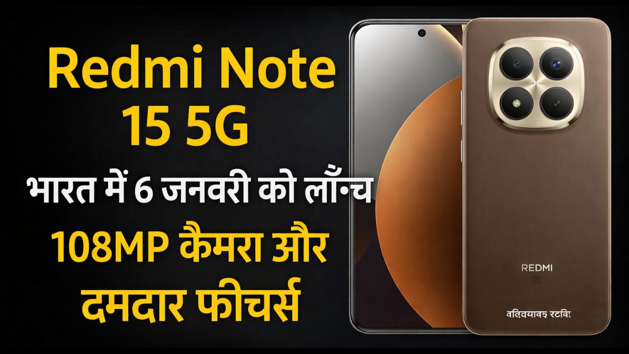 Xiaomi अपनी लोकप्रिय Redmi Note सीरीज़ का नया स्मार्टफोन Redmi Note 15 5G भारत में 6 जनवरी 2026 को लॉन्च करने जा रही है। कंपनी ने इसके लॉन्च की पुष्टि कर दी है, जबकि इसके कई फीचर्स लॉन्च से पहले सामने आए टीज़र और रिपोर्ट्स के ज़रिए सामने आए हैं। Xiaomi इस फोन को “108 MasterPixel Edition” के नाम से प्रमोट कर रही है।