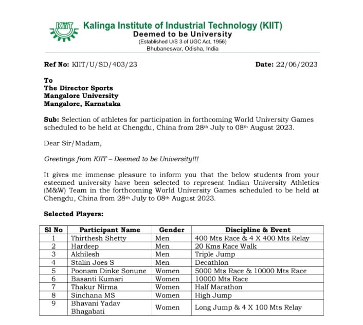 - वर्ल्ड यूनिवर्सिटी गेम्स के लिए हुआ चयन