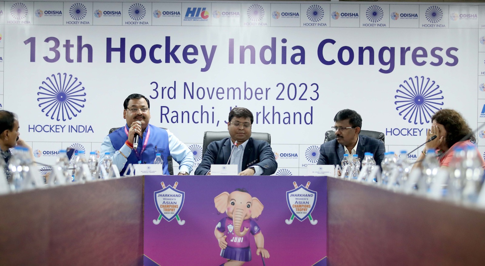 रांची। हॉकी इंडिया (एचआई) की वार्षिक आमसभा शुक्रवार को मरांग गोमके जयपाल सिंह मुंडा एस्ट्रोटर्फ स्टेडियम में संपन्न हुई। एजीएम के बाद आयोजित प्रेस कॉन्फ्रेंस में हॉकी इंडिया के अध्यक्ष दिलीप तिर्की ने कहा कि झारखंड के मुख्यमंत्री हेमंत सोरेन का बहुत ही बड़ा योगदान है कि वो हॉकी को सपोर्ट कर रहे। उनके ही प्रयास से asian championship ट्रॉफी यहां करा रहे हैं। भविष्य में यहां और भी इंटरनेशनल मैच कराये जाएंगे। उन्होने कहा कि पिछले एक साल में हॉकी इंडिया में बहुत कुछ बदलाव हुआ है। जो पहले कभी नहीं हुआ था। हॉकी इंडिया में अंडर-17 टीम को यूरोप भेजा गया। वहीँ, अंतर्राष्ट्रीय हॉकी महासंघ (एफआईएच) के अध्यक्ष तैय्यब इकराम ने कहा है कि इंडियन हॉकी है तो हॉकी वर्ल्ड है। हॉकी फैंस है तो हॉकी है, जिस तरह से दर्शक बड़ी संख्या में मैच देखने आ रहे हैं काफी गर्व महसूस कर रहें हैं। हॉकी इंडिया के महासचिव भोलानाथ सिंह ने कहा कि ग्रास रूट को मजबूत किया जाएगा। हॉकी का जो पुराना दिन भारत में था उसे लाने का प्रयास किया जा रहा है। सभी स्टेट को 10-10 रुपए दिया गया है, ताकि हॉकी का और विस्तार हो। सभी स्टेट में डेवलपमेंट पर लेकर कार्य किया जा रहा है। ताकि खिलाड़ियों को अच्छा प्लेटफॉर्म दिया जा सके।