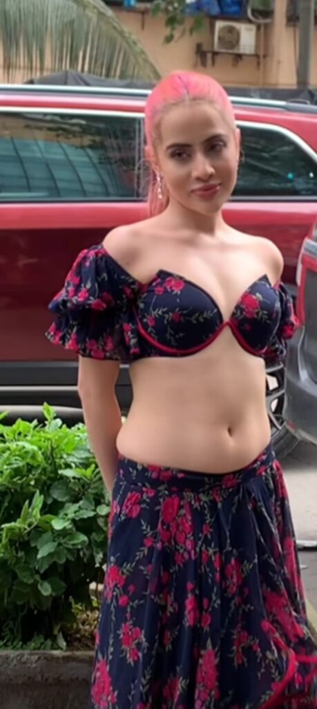 रांची। इंडस्ट्री की फैशन क्वीन उर्फी जावेद का अंदाज से फैंस के होश उड़ जाते हैं। हर बार एक ऐसा आउटफिट पहनकर एंट्री लेती हैं, जिसे देखते ही लोगों के भी होश उड़ जाते हैं। यही कारण है कि पैपराजी भी उर्फी को अपने कैमरे में कैद करने के लिए बेताब रहते हैं। अब हाल ही में उर्फी जावेद मुंबई में स्पॉट हुईं, जहां से उनका वीडियो इंटरनेट पर तेजी से वायरल हो रहा है। इस वीडियो में उर्फी ब्लू और पिंक कलर का फ्लोरल आउटफिट पहनें नजर आ रही हैं। उर्फी के इस आउटफिट को देख ट्रोल्स भी उनकी जमकर तारीफ कर रहे । उर्फी जावेद इस वीडियो में ब्लू और पिंक कलर का फ्लोरल ब्लाउज और स्कर्ट पहनें नजर आ रही हैं। उर्फी का यह ऑफ शॉल्डर ब्लाउज काफी खूबसूरत लग रहा है। साथ ही उन्होंने अपने बालों की पोनी टेल बनाई हुई है। इस आउटफिट में उर्फी जावेद बेहद ही खूबसूरत लग रही हैं।