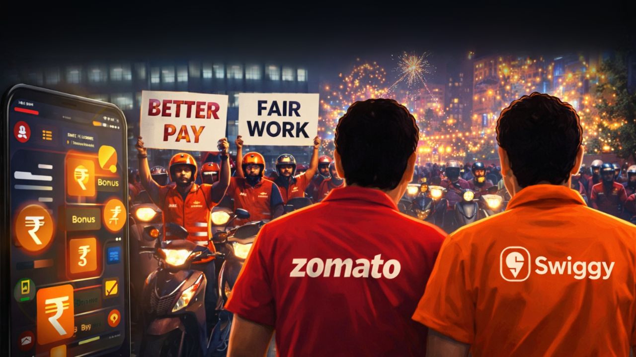 न्यू ईयर ईव के मौके पर गिग वर्कर्स की यूनियनों TGPWU और IFAT ने बेहतर वेतन, कार्य परिस्थितियों और सोशल सिक्योरिटी की मांग को लेकर देशव्यापी हड़ताल का ऐलान किया है। यूनियनों का दावा है कि इस आंदोलन में 1.7 लाख से ज्यादा डिलीवरी पार्टनर्स शामिल हो सकते हैं, जिससे फूड और क्विक कॉमर्स सेवाओं पर असर पड़ने की आशंका है।